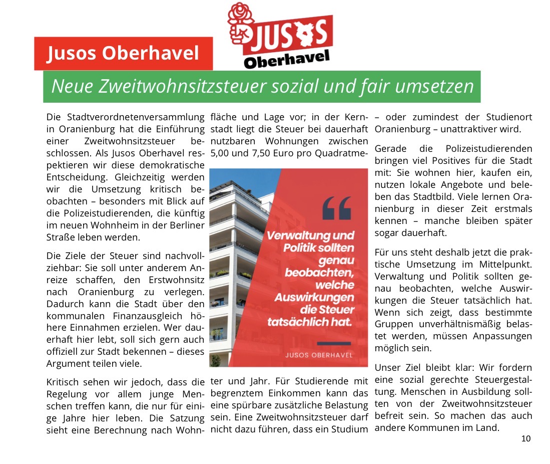 - März 2026: „Neue Zweitwohnsitzsteuer sozial und gerecht umsetzen!“ – Artikel im Oranienburger Rotkehlchen